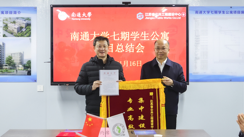 1月16日上午,我举行校七期学生公寓项目总结会暨南通四建集团有限公司捐赠仪式。校党委书记杨宇民出席活动并讲话。