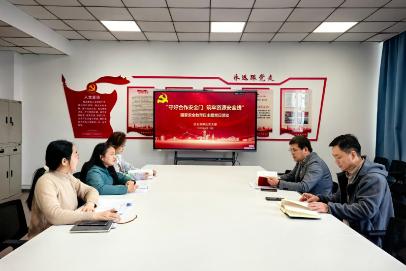 4月15日下午,在第十一个国家安全教育日之际,社会资源处党支部开展“守好合作安全门,筑牢资源安全线”主题党日活动。活动旨在深入学习贯彻总体国家安全观,切实增强全处党员干部在对外合作与资源拓展工作中的安全意识和风险防范能力。支部书记施险峰主持活动并作专题宣讲。